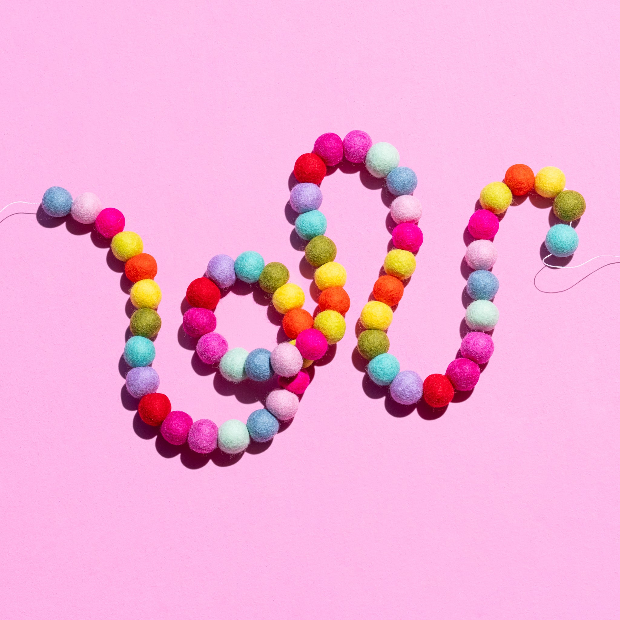 Felt ball garlands never go out of style! Add a pop of colour to a nursery, kids room or play room!