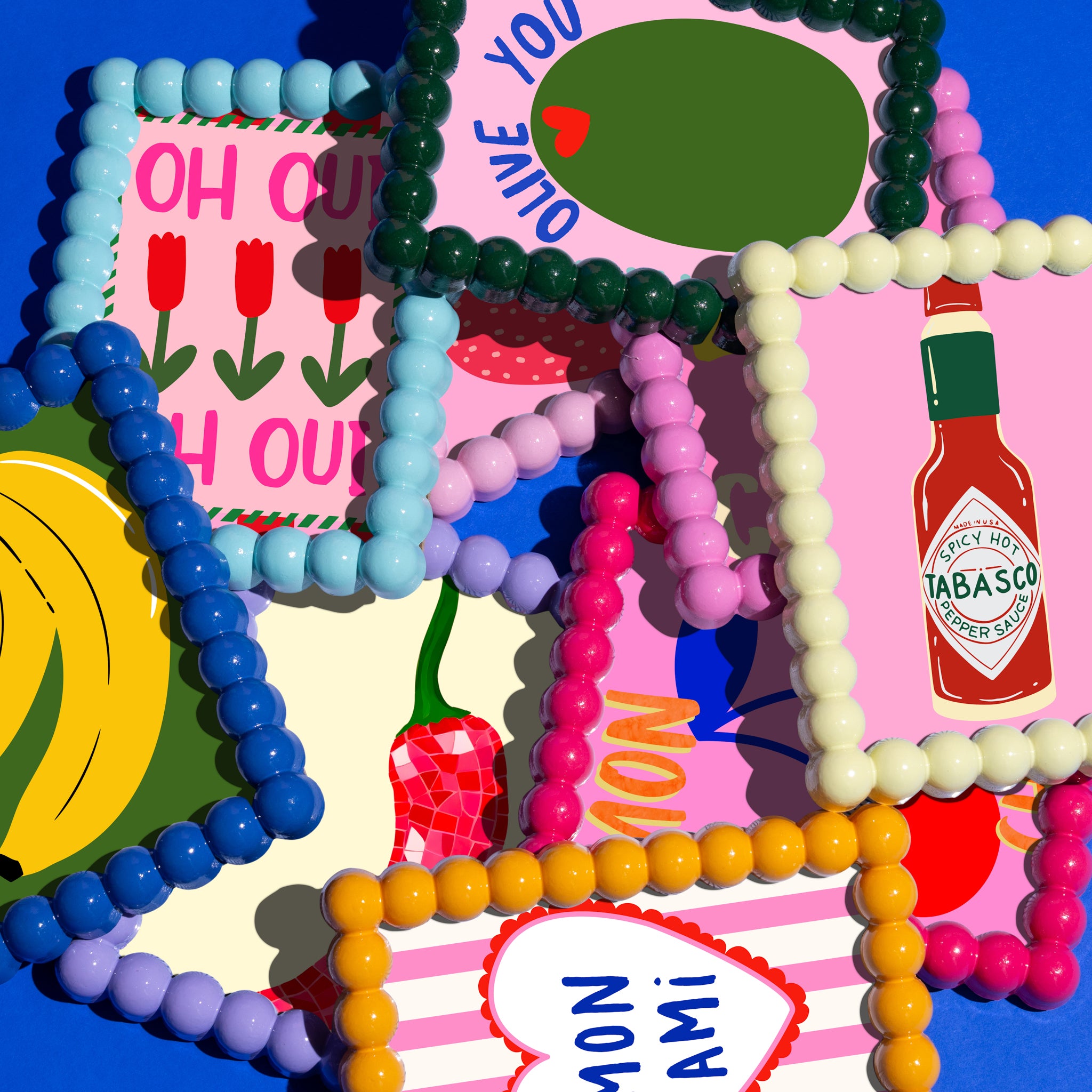 Classic button frame.  The button frame is the perfect choice to add a fun pop of colour to your home