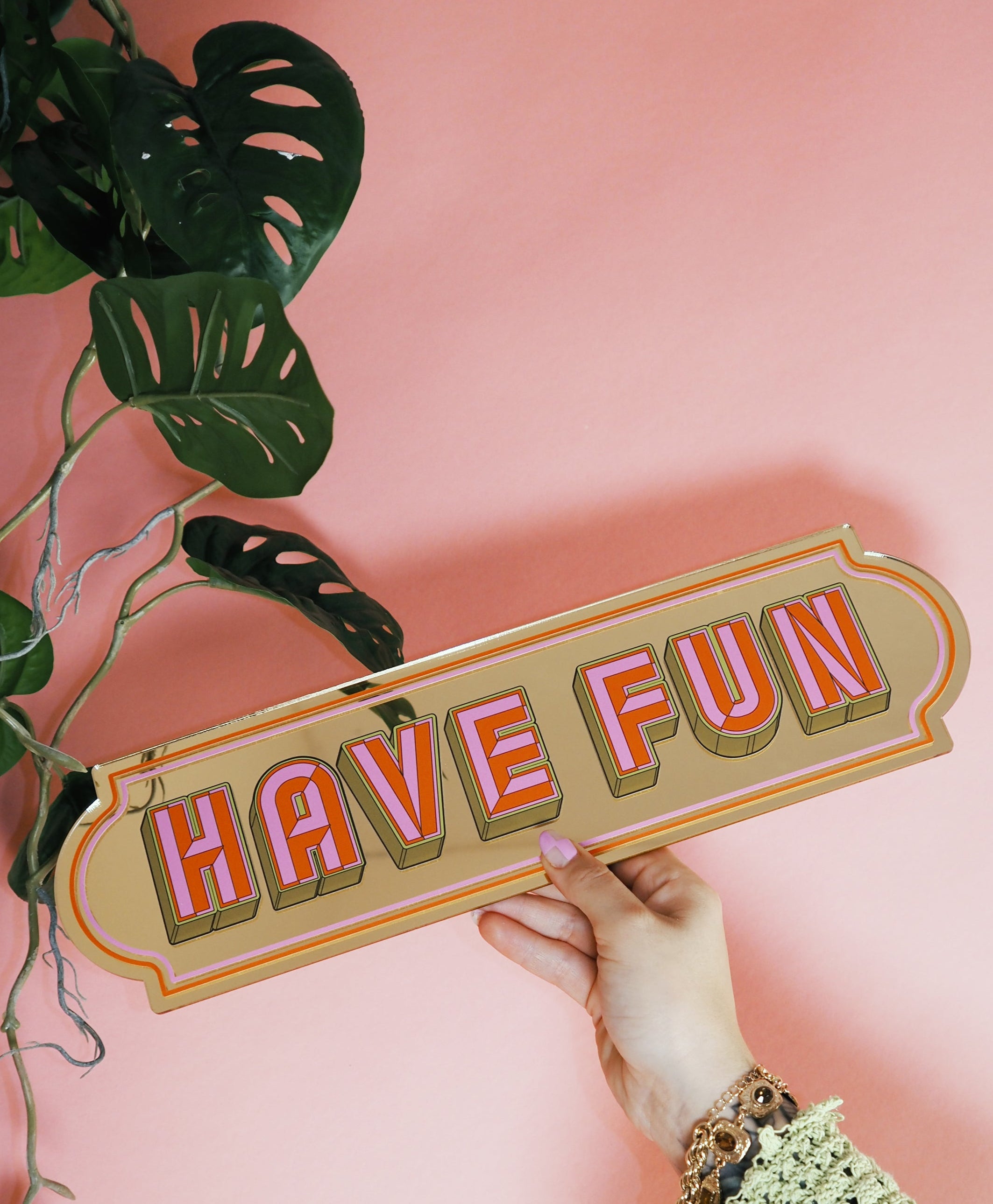 Add a burst of colour and personality to your walls with these kitsch mirrored signs. Featuring fun, relatable slogans in retro typography, each sign shines in pink, orange, copper, or gold mirror. Available in small, medium, and large sizes, they’re the perfect playful statement piece to brighten up your wall.