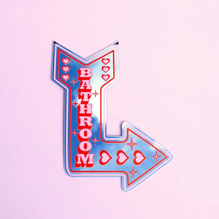 Add a touch of nostalgia and quirkiness to your home with our Retro Bathroom Mirror, available in two sizes. Featuring a neon sign-inspired design with a playful arrow shape in red & pink, it's a fun addition to any room. Inspired by the bright neon lights of Vegas! Comes with COMMAND strips for hanging UV printed vinyl & acrylic mirror EU SAFETY INFO https://www.printedweird.com/pages/eu-safety-information Small Size: 24cm x 17cm Large Size: 37cm x 29cm