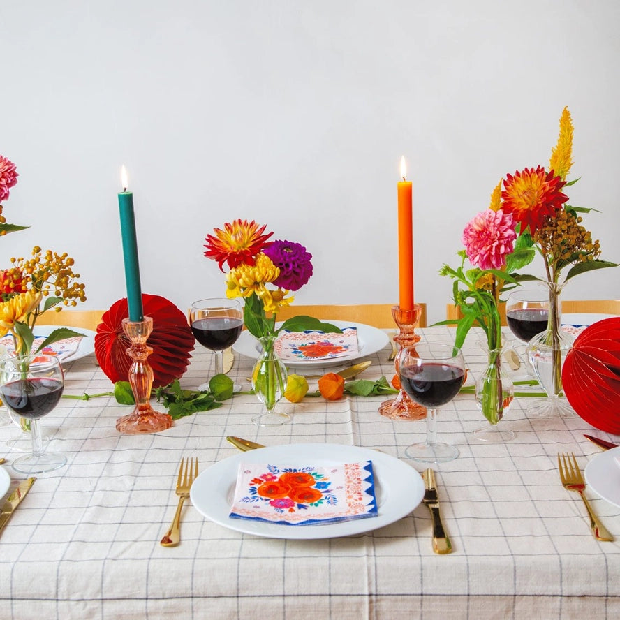 Orange Glass Candlestick Holder by Talking Tables. This colourful candle holder will add a touch of sophistication to your kitchen table, dining room or mantelpiece as home decor. The perfect table decoration for Halloween, a romantic candle lit dinner, autumnal dinner party with friends, afternoon tea or even a wedding.. Size - 16cm height Holds 2cm candle depth and 2cm width