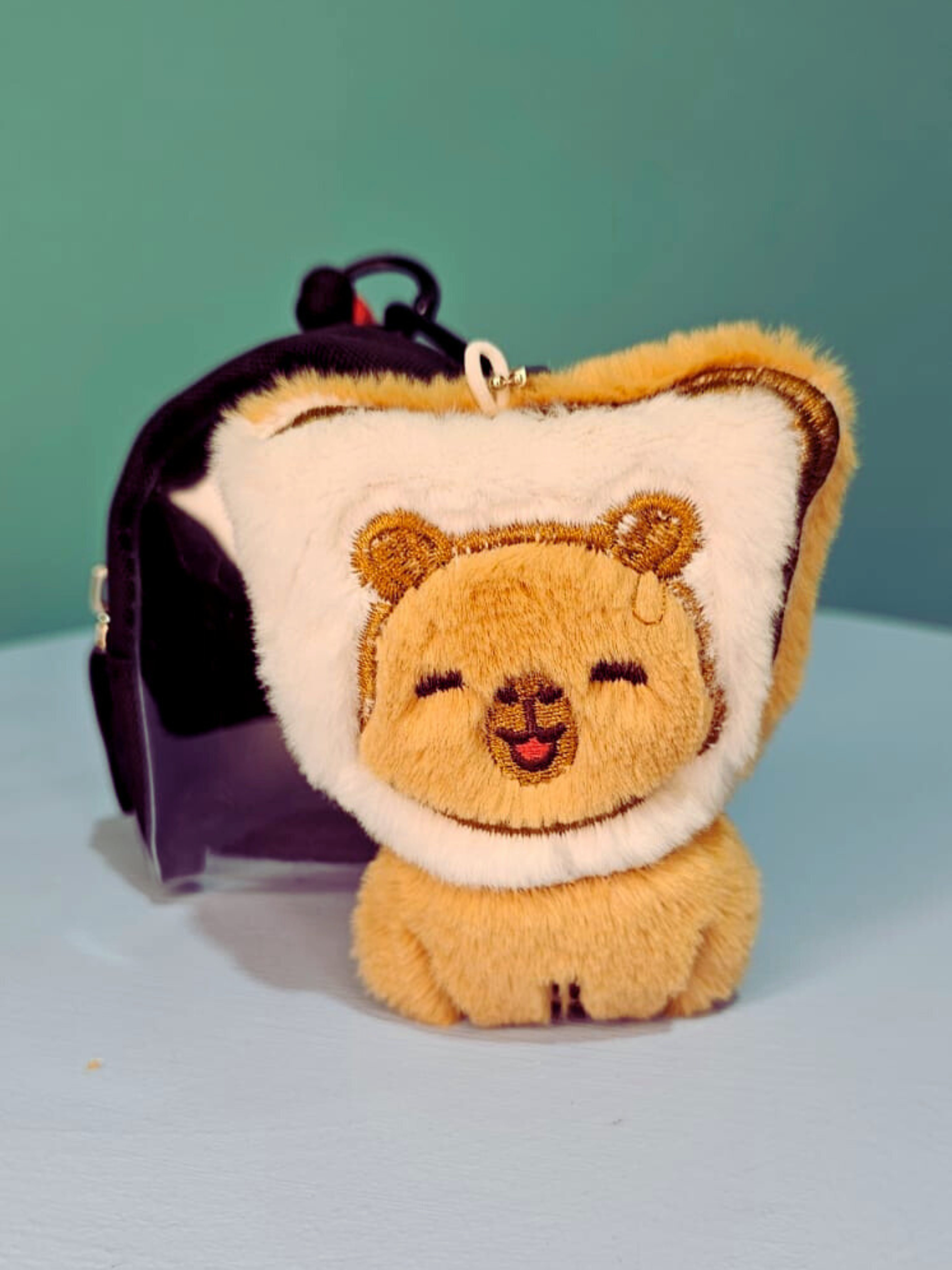 Fluffy plush toys come with a little backpack so you can carry them around safety. They also come with a clip so you can attached to anything that needs a little furry friend