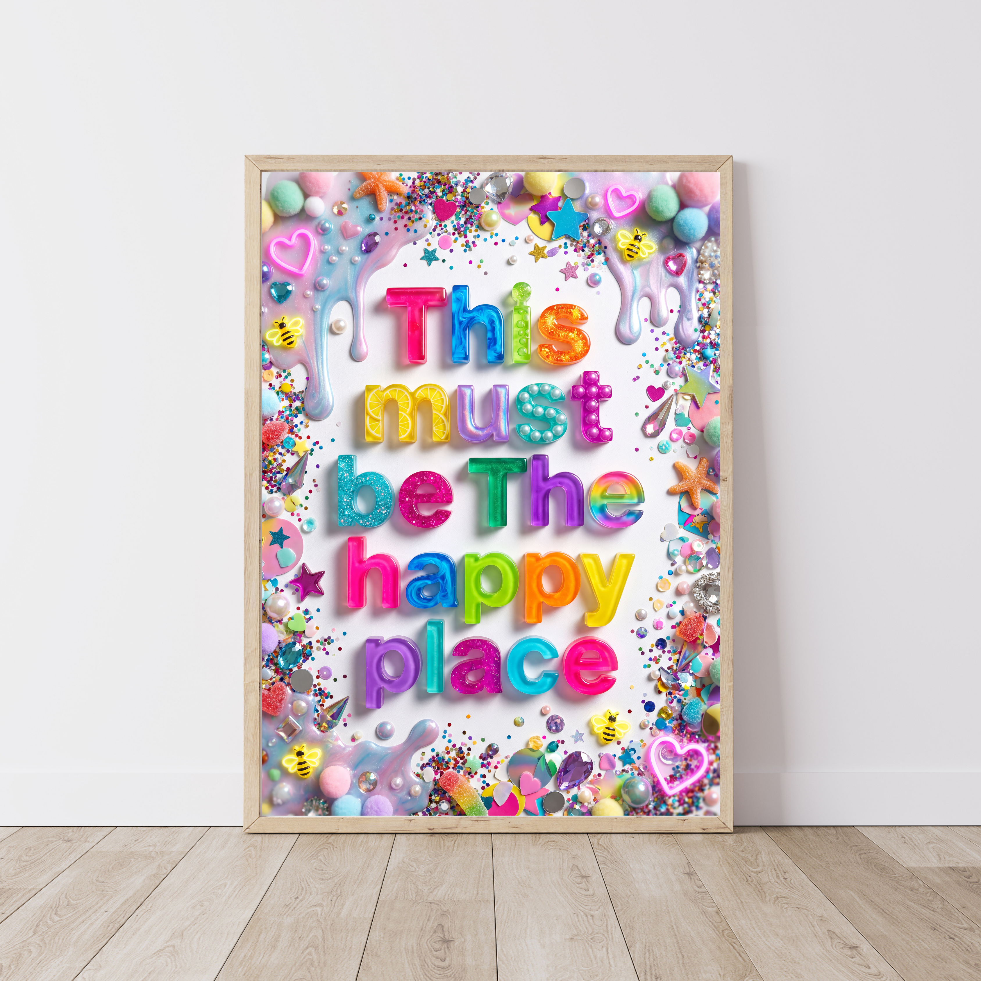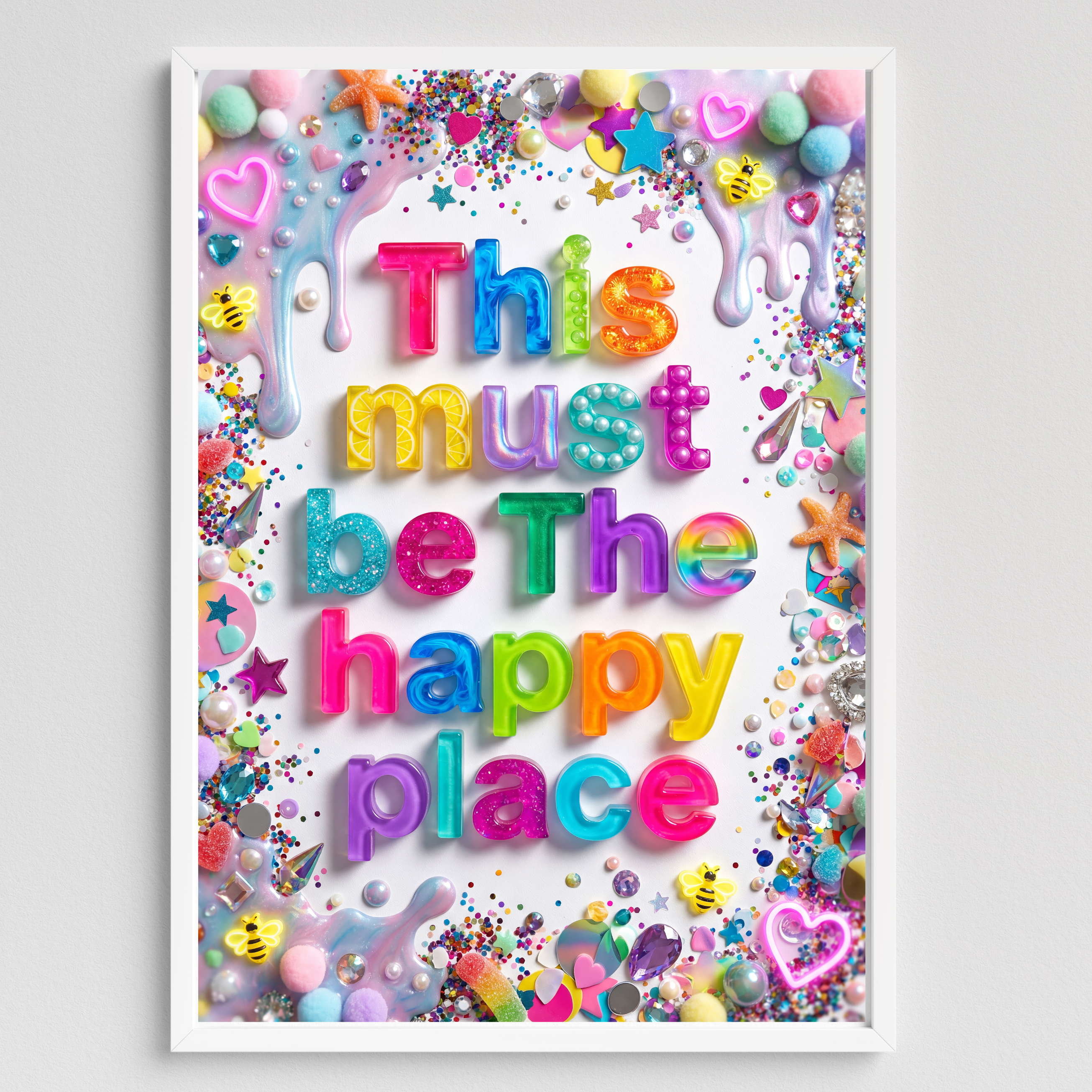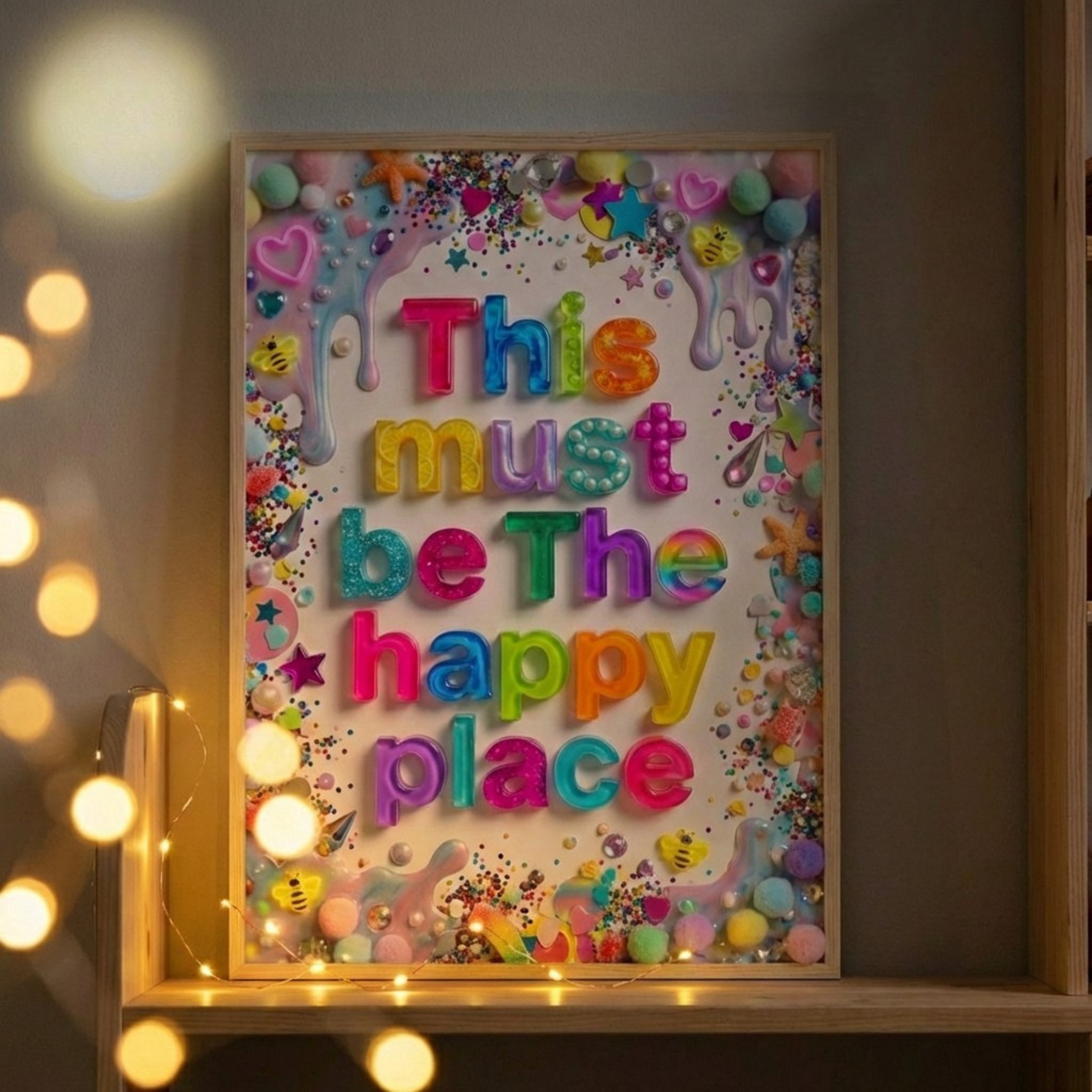 Discover our enchanting new print series. This new collection is bursting with vibrant colours, shimmering glitter and cutie embellishments. This original design is perfect or adding a touch of joy and sparkle to any space or ideal as a gift!